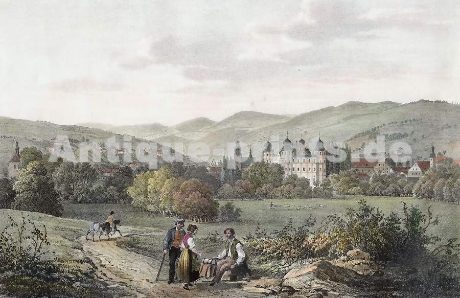 Czechia. Original steel engraving drawn by C. Würbs, engraved by E. Höfer. ca 1850. Very good condition. Hand-coloured. 16x10,5cm. Matted.