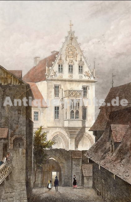 Tchéquie. Gravure sur acier, gravée par J. Poppel d´après C. Würbs. Vers 1850. Défaut. Aquarellée à la main. 16x10,5cm. Montée sous passe-partout.