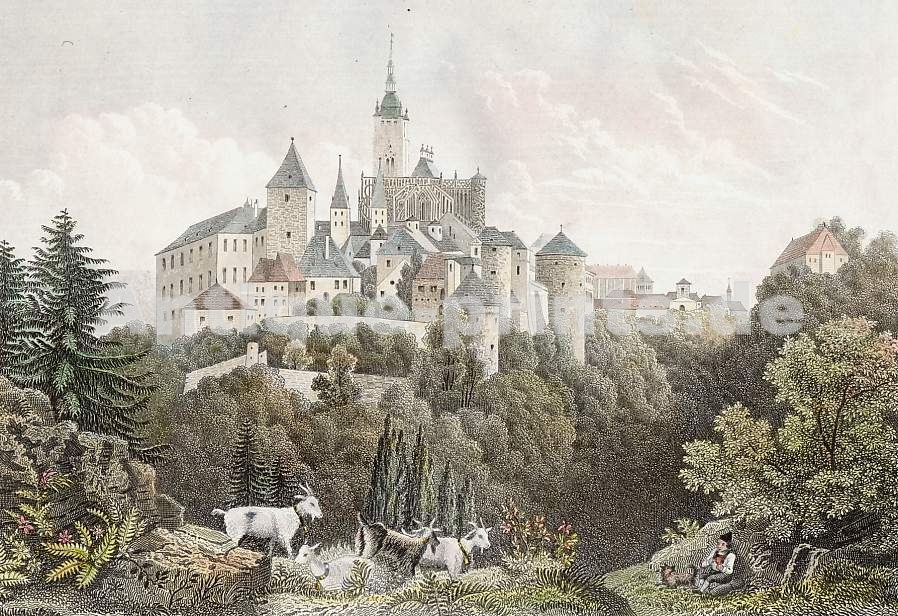 England. Original steel engraving drawn by W. H. Bartlett, engraved by E. Young. 1836. Very good condition. Hand-coloured. 16x9,5cm. Matted.