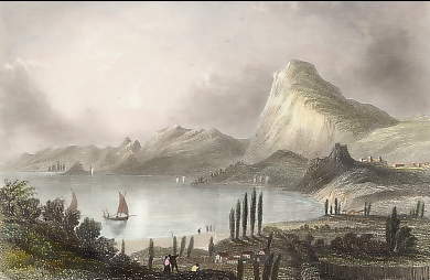 Griechenland. Kupferkarte von J. Roux. 1764. Sehr guter Zustand. Handkoloriert. 18,5x12,5cm. Mit Passepartout.