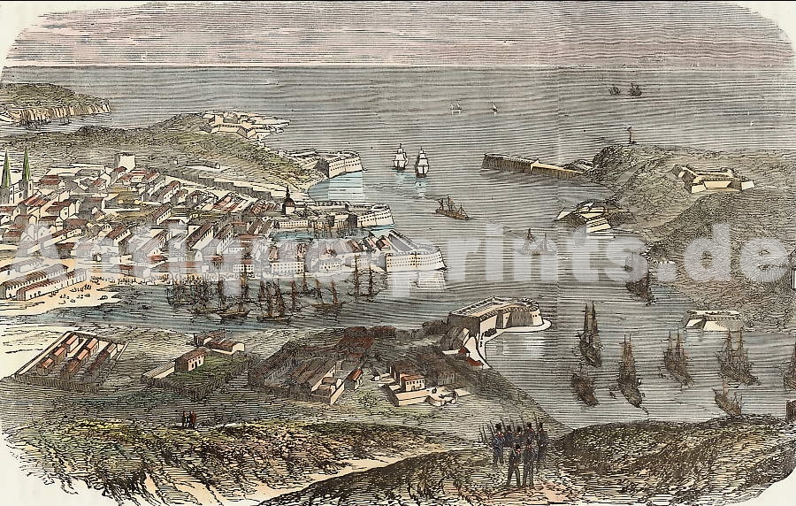 Herculaneum. Gravure sur cuivre gravée par F. de Grado d´après N. Vanni. 1765. Bon état. Texte au verso. Aquarellée et gouachée à la main. 21,5x8cm. Montée sous passe-partout.