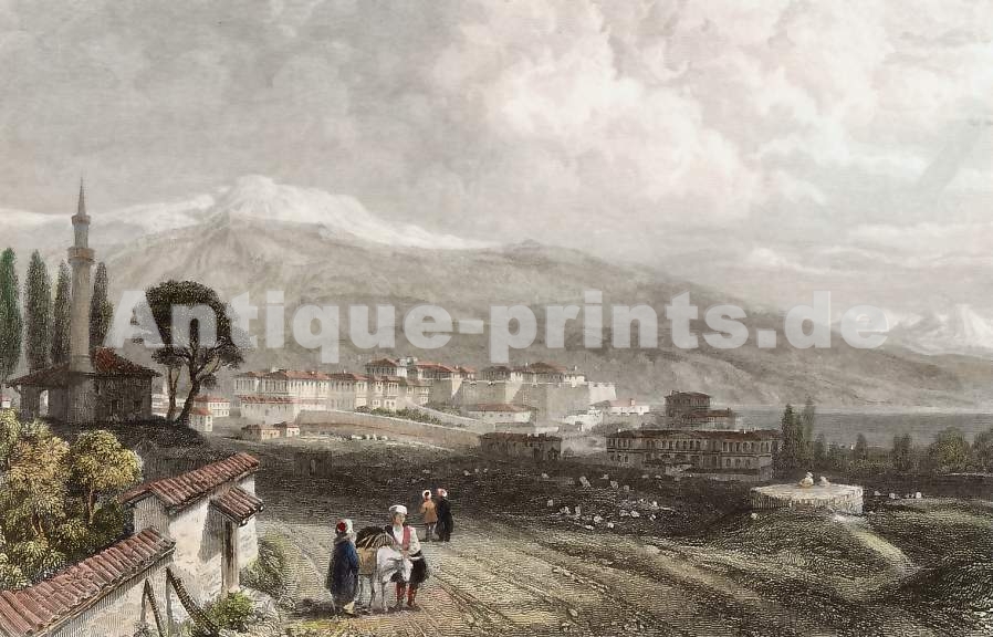 Terre Sainte. Gravure sur acier, gravée par J. C. Armytage d´après W. H. Bartlett. 1847. Bon état. Pliure centrale. Aquarellée à la main. 39x23,5cm. Montée sous passe-partout.
