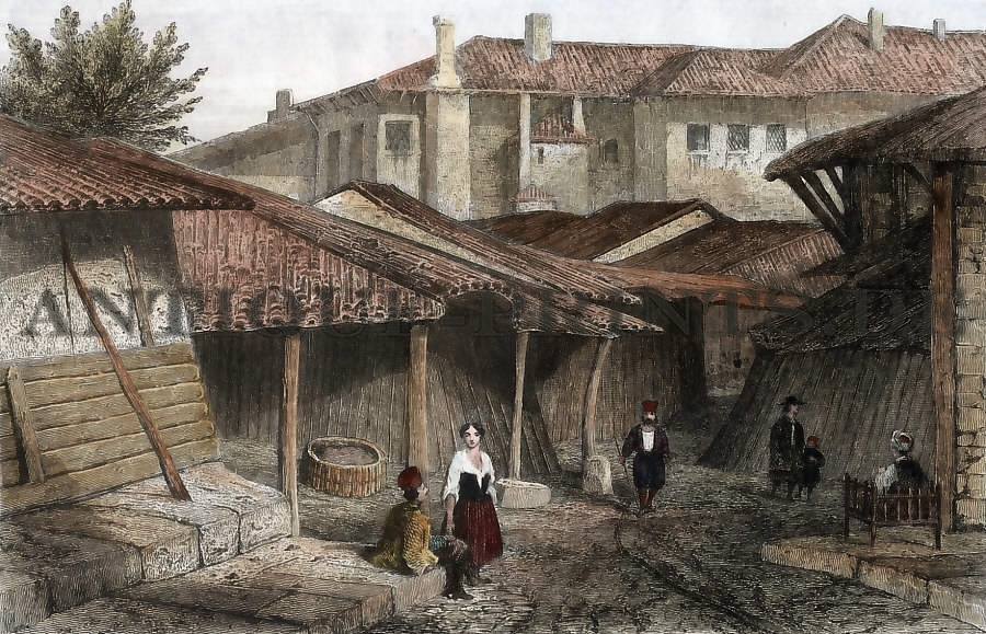 England. Original steel engraving, drawn by Gilbertt, engraved by Melville. 1841. Slightly soiled in the margins. Hand-coloured. 18x13cm. Matted.