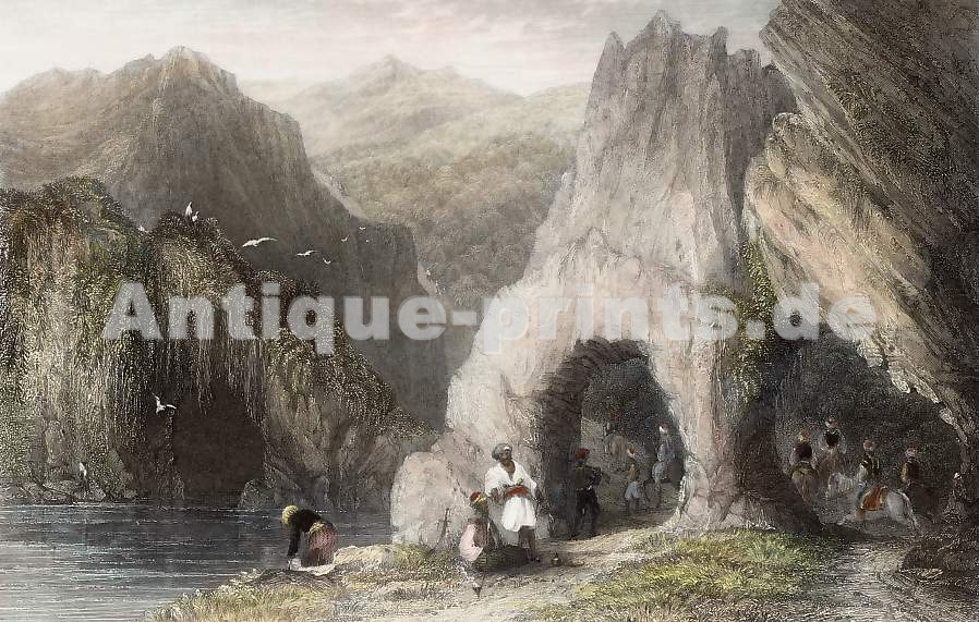 Spain. Original wood engraving drawn by P. Benoit, engraved by C. Laplante. 1878. Light foxing in the margins. Hand-coloured. 19x13cm. Matted.