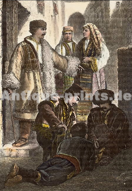 Bulgaria. Original steel engraving drawn by W. H. Bartlett, engraved by R. Wallis. 1842. Very good condition. Hand-coloured. 17,5x12cm. Matted.