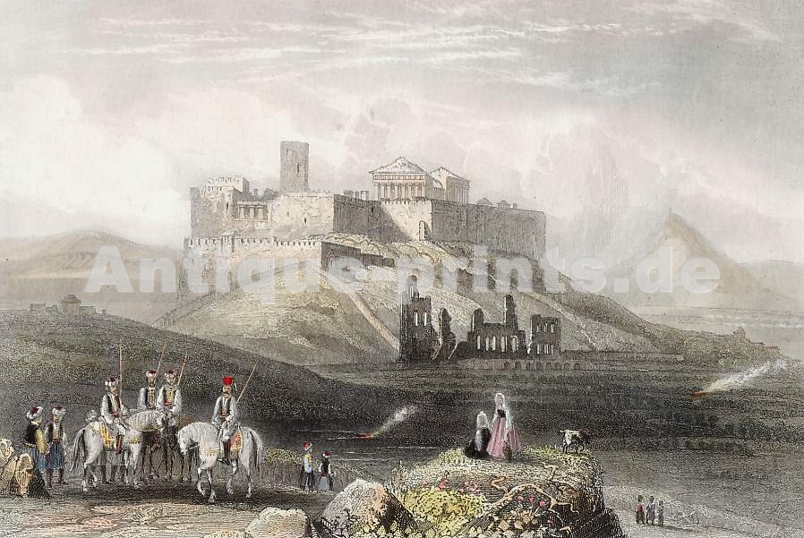 Griechenland. Stahlstich von J. Cousen nach W. H. Bartlett. 1855. Sehr guter Zustand. Handkoloriert. 19x12,5cm. Mit Passepartout.