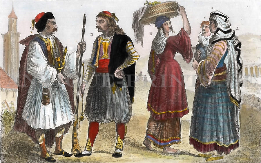 Plates, Engraving, Stiche, Gravure, Kostume, Costumes, Greece, Griechenland, Grèce, Hydra, Thessaly,
