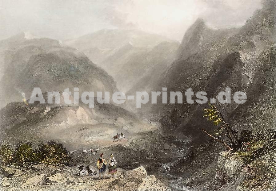 Germany. Original steel engraving, engraved by G. M. Kurz after L. Rohbock. 1859. Good condition. Hand-coloured. 16x11cm. Matted.