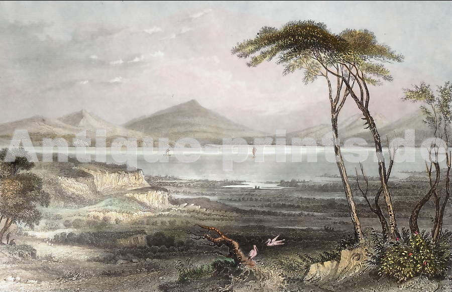 Varia. Original steel engraving, engraved by E. Finden after F. Wood. 1853. Very good condition. Decorative border. Hand-coloured. 16,5x13,5cm. Matted.