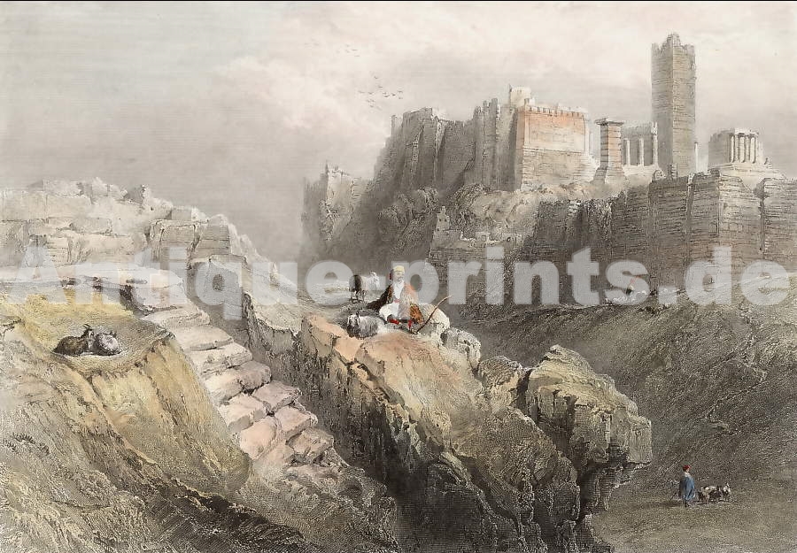 Greece. Original wood engraving by Terington. ca 1880. Printed on the reverse side. Good condition. Hand-coloured. 23,6x15,6cm. Matted.