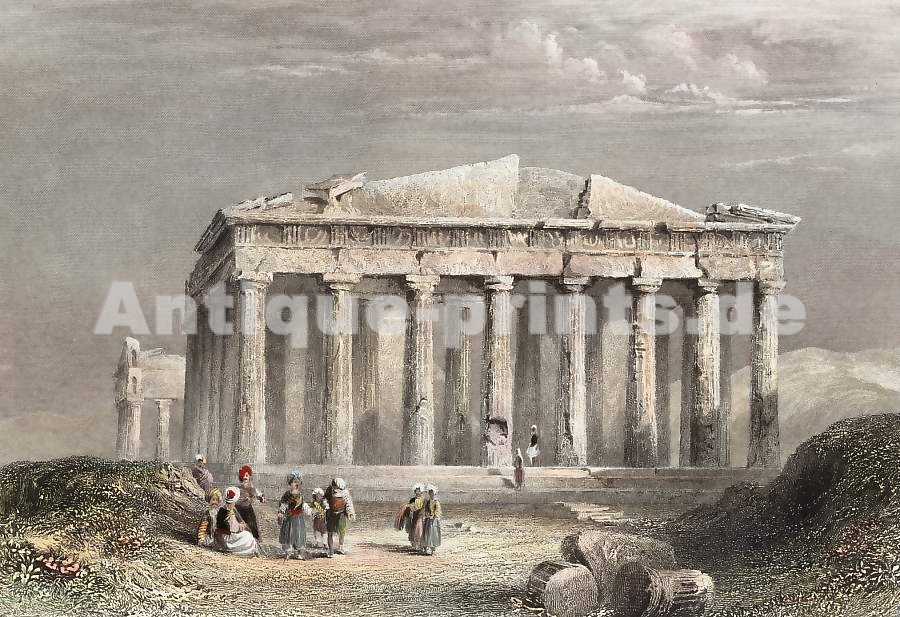 Grèce. Gravure sur acier. 1835. Légères rousseurs dans les marges. Aquarellée à la main. 13x7,5cm. Montée sous passe-partout.