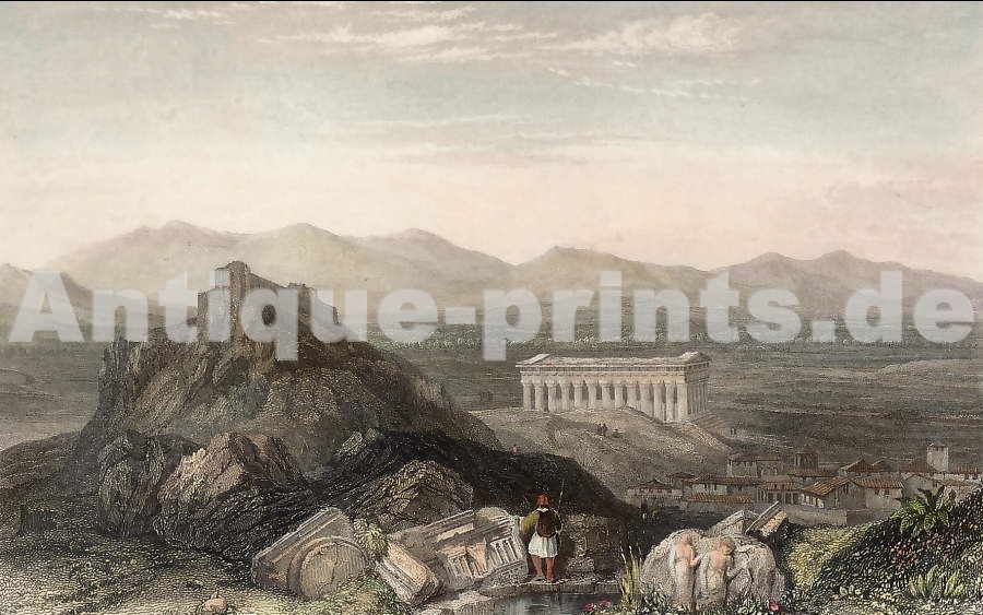 Grèce. Gravure sur acier, gravée par Lemaître. 1835. Très bon état. Aquarellée à la main. 12,5x8cm. Montée sous passe-partout.