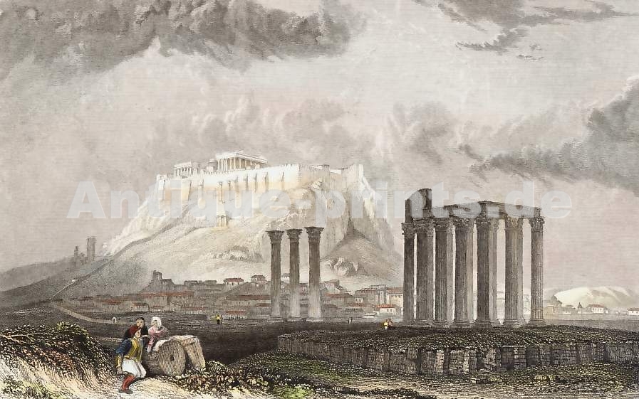 Grece, Griechenland, Gravure, Greece, Stich, Engraving, Athens, Athenes, Acropole, Acropolis, Temple, Temple of Jupiter, Grecia