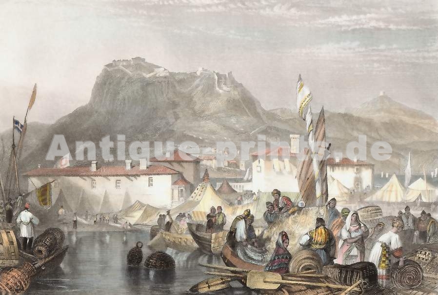 Grèce. Gravure sur acier. 1835. Bon état. Aquarellée à la main. 13,5x8cm. Montée sous passe-partout.
