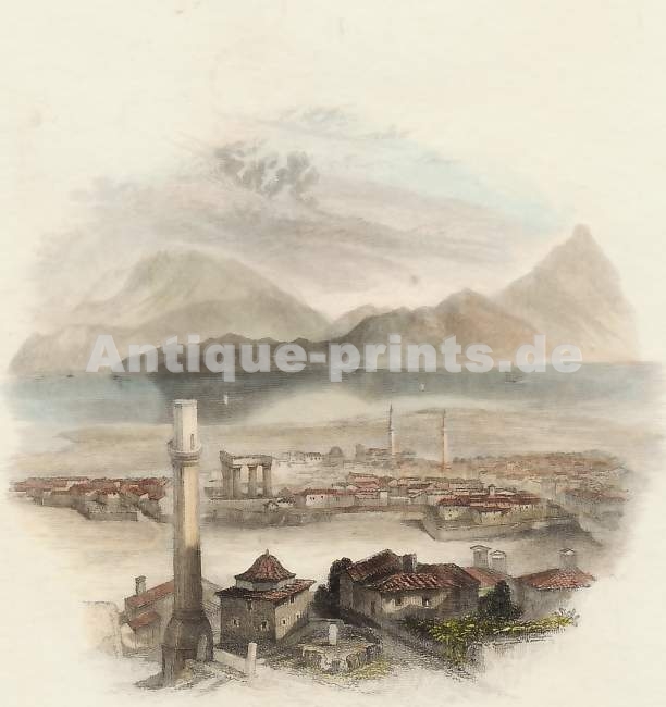 Greece. Original steel engraving drawn by C. Stanfield, after a sketch by W. Page, engraved by E. Finden. 1837. Very good condition. Hand-coloured. 12x8cm. Mounted.