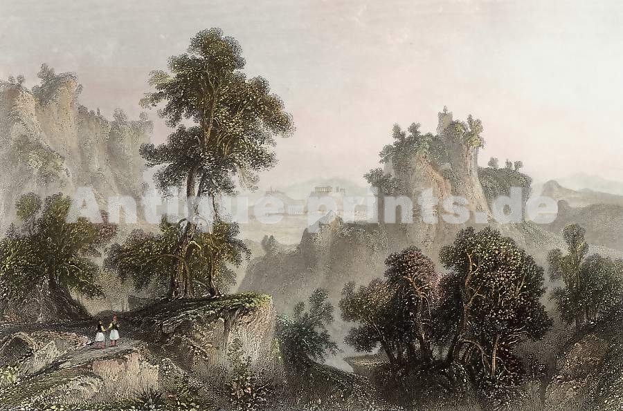 Tchéquie. Gravure sur acier, gravée par Paul Girardet d´après Karl Girardet. 1837. Très bon état. Aquarellée à la main. 13x10cm. Montée sous passe-partout.