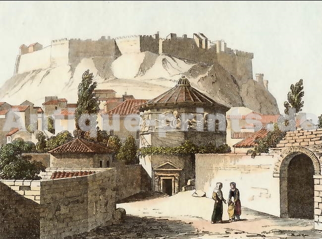 Grèce. Gravure sur acier, gravée d´après C. A. Menzel. 1840. Très bon état. Aquarellée à la main. 20,5x14cm. Montée sous passe-partout.