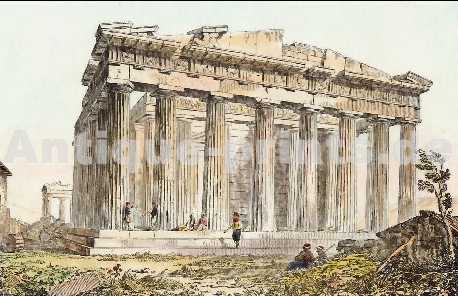 Grèce Ancienne. Gravure sur cuivre dessinée et gravée par Tommaso Piroli. 1804. Rousseurs. Aquarellée à la main. 19,5x10cm. Montée sous passe-partout.