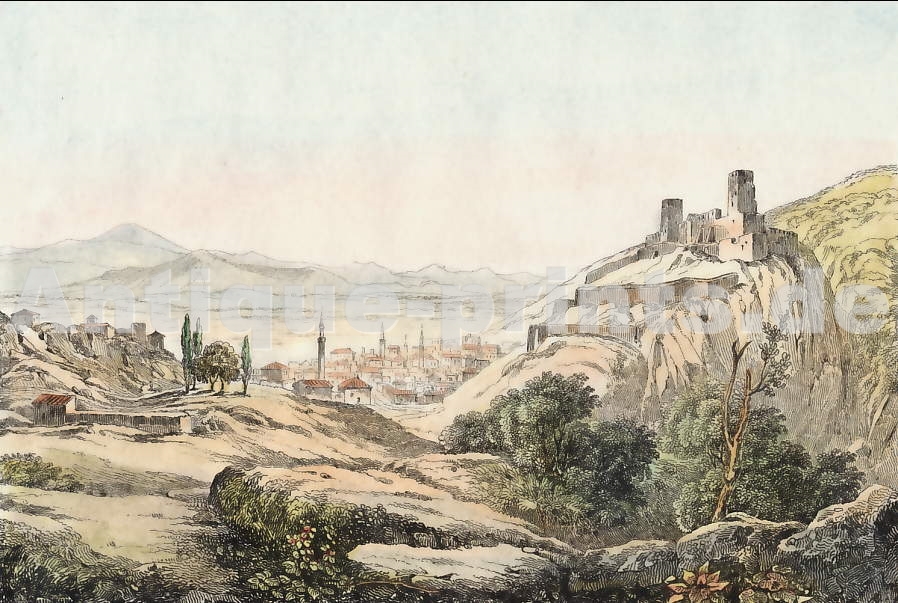 Turquie. Gravure sur acier, gravée par F. W. Topham d´après T. Allom. 1840. Légères rousseurs dans les marges. Aquarellée à la main. 19x12,5cm. Montée sous passe-partout.