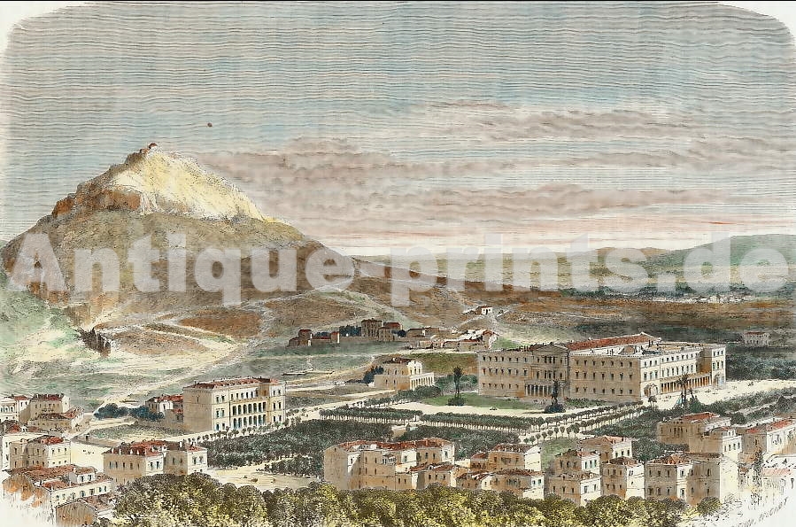 Grèce. Gravure sur acier. 1835. Très bon état. Aquarellée à la main. 12,5x8cm. Montée sous passe-partout.