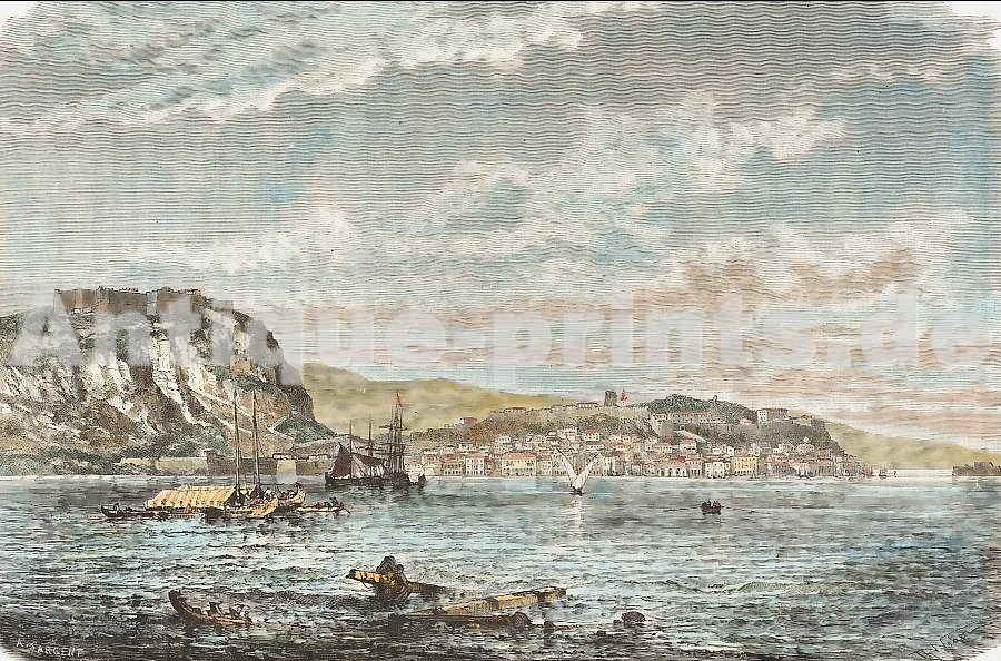 Grece, Griechenland, Plates, Engraving, Greece. Gravure, Stich, Engraving, Print, Grecia, Nafplion, Nauplia, Nauplie, Napoli Di Romania, Fortress of Palamedi, Citadelle De Palamède, Festung Palamedi