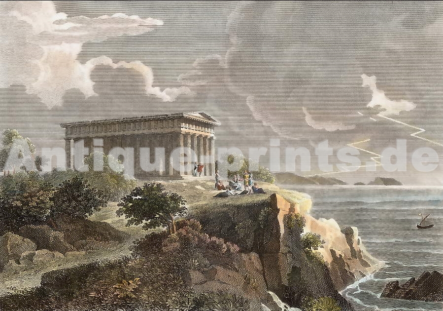 Greece. Original steel engraving drawn by Major Irton, engraved by R. Brandard. 1841. Very good condition. Hand-coloured. 18x12,5cm. Matted.