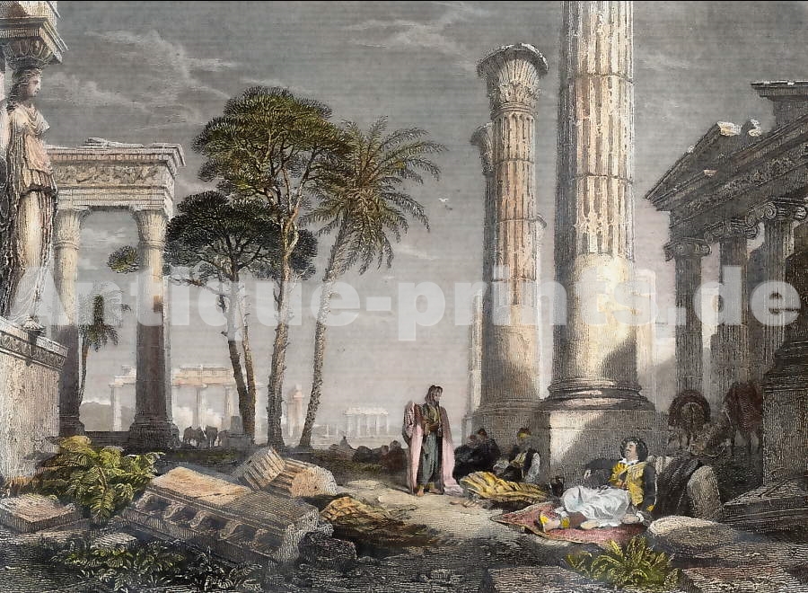 Greece. Original steel engraving after C. A. Menzel. 1840. Very good condition. Hand-coloured. 20,5x14cm.