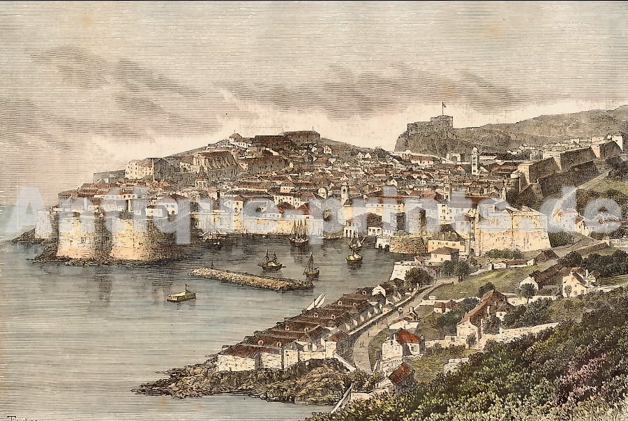 Gibraltar. Original steel engraving drawn by W. Turner, engraved by E. Finden. 1837. Very good condition. Hand-coloured. 14x9cm. Matted.