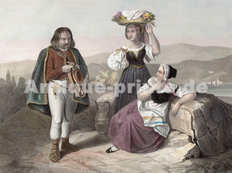 Genre. Original steel engraving, engraved by J. Godfrey after L. Haghe. 1855. Good condition. Hand-coloured. 25x20cm. Matted.