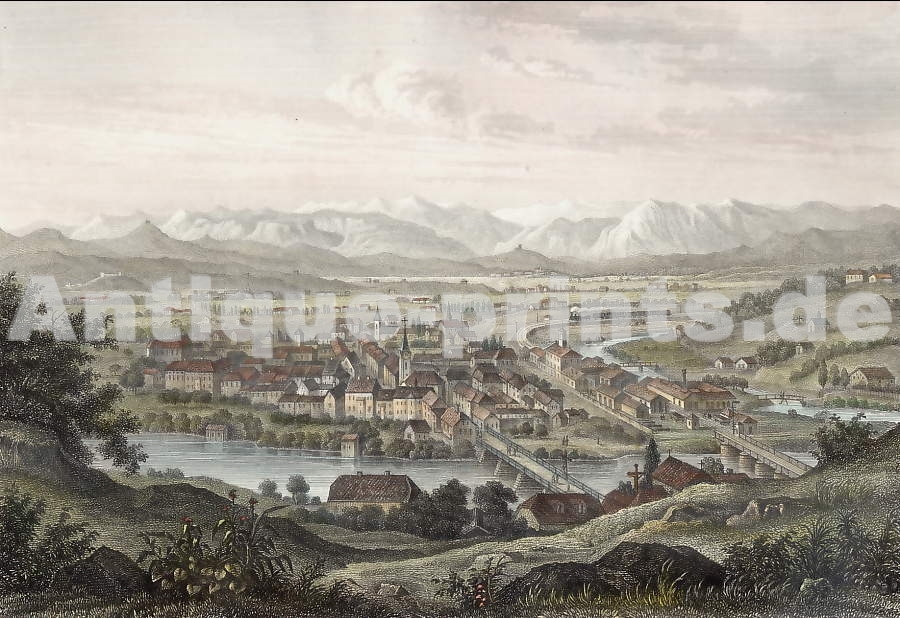 Slovénie. Gravure sur acier, gravée par W. French d´après Lauterbach. ca 1850. Très bon état. Aquarellée à la main. 21x14,5cm. Montée sous passe-partout.