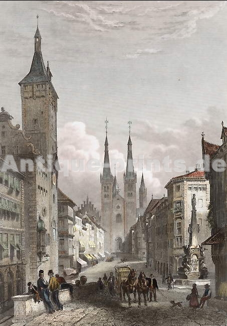 Germany. Original steel engraving. Bibliograph. Institut in Hidlburghausen. ca 1850. Good condition. Hand-coloured. 15,2x9,7cm. Matted.