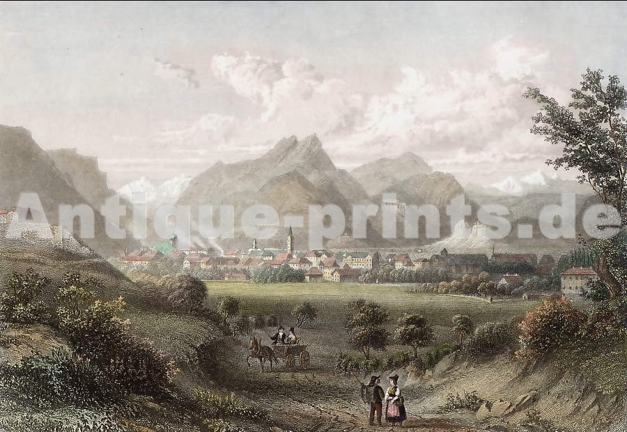 Allemagne. Gravure sur acier, gravée par Navellier et Marie d´après Clerget. 1885. Légères rousseurs dans les marges. Aquarellée à la main. 23x15cm. Montée sous passe-partout.