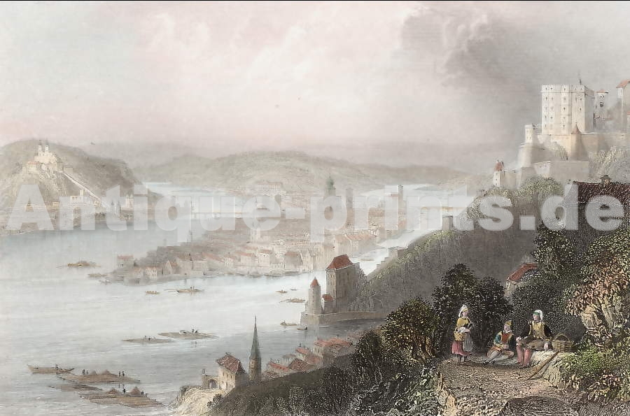 Germany, Allemagne, Deutschland, Regensburg, Stich, Engraving, Gravure, Bavaria, Bavière, Bayern, Passau, Inn,