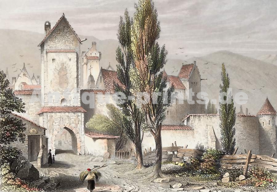 Allemagne. Gravure sur acier. ca 1840. Très légères rousseurs dans les marges. Aquarellage ancien. 11x7,5cm. Montée sous passe-partout.