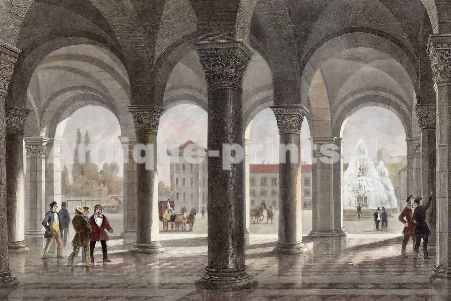 Autriche. Gravure sur acier imprimée en deux couleurs, gravée par W. Frenchbd´après H. Lauterbach. ca 1850. Très bon état. Bordure décorative. Aquarellée à la main. 20,5x13,5cm. Montée sous passe-partout.