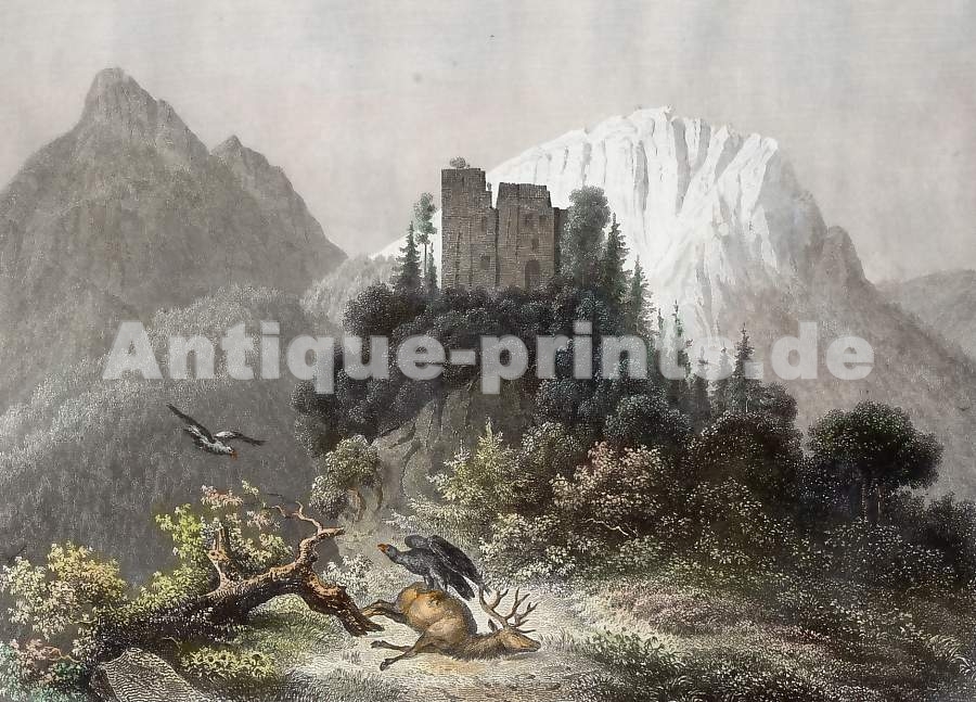 Allemagne. Gravure sur acier. Bibliograph. Institut in Hidlburghausen. ca 1860. Bon état. Aquarellée à la main. 15,5x9,5cm. Montée sous passe-partout.