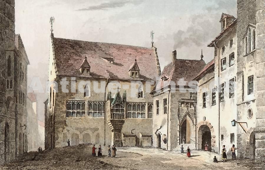 Allemagne. Gravure sur acier, dessinée et gravée par A. H. Payne. 1847. Très bon état. Aquarellée à la main. 15,5x11,cm. Montée sous passe-partout.