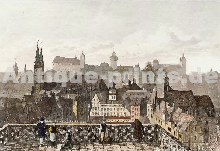 France. Original steel engraving drawn by J. D. Harding, engraved by J. T. Willmore. 1834. Very good condition. Hand-coloured. 14x9cm. Mounted.