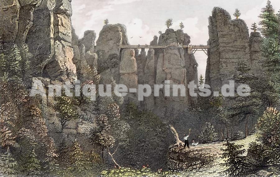 Allemagne. Gravure sur acier. Bibliograph. Institut in Hidlburghausen. ca 1850. Très bon état. Aquarellée à la main. 15,5x10cm. Montée sous passe-partout.