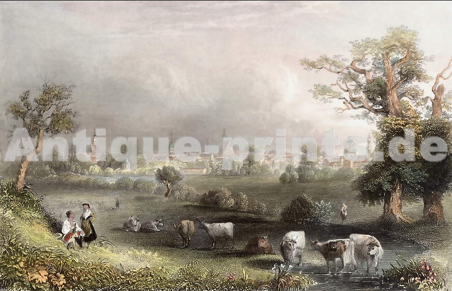 Allemagne. Gravure sur acier, dessinée et gravée par A. H. Payne. ca 1850. Très bon état. Aquarellée à la main. 16,5x10,5cm. Montée sous passe-partout.