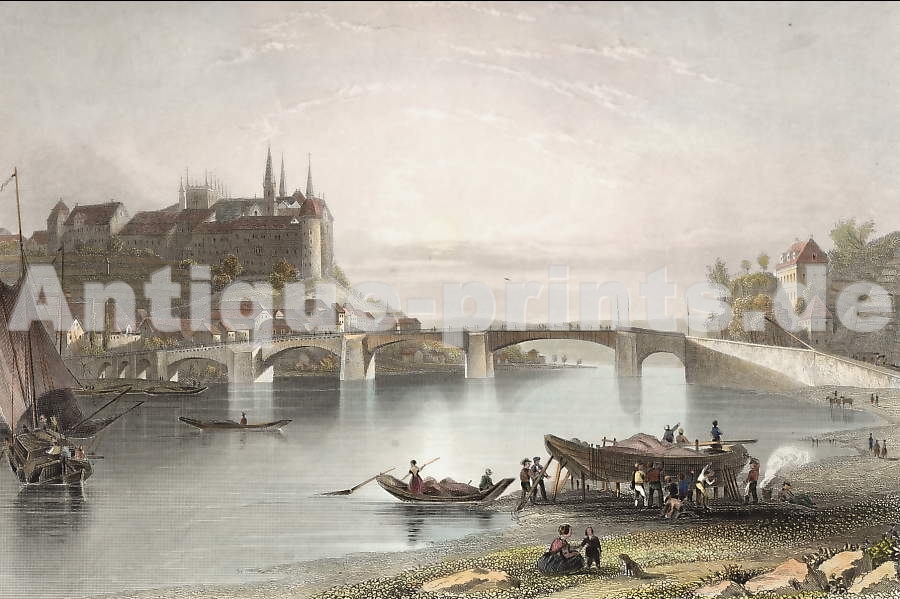 Italy. Original steel engraving, engraved by A. H. Payne. 1835. Good condition. Hand-coloured. 15x9,5cm. Matted.