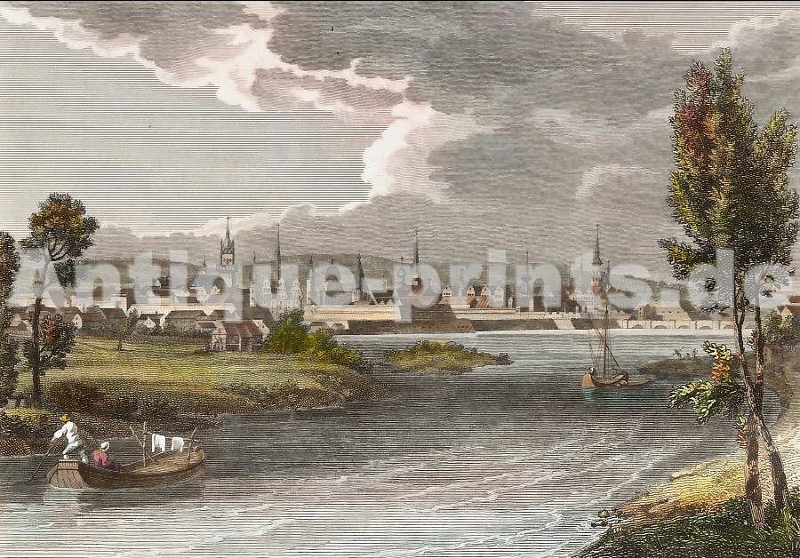 Pompeii. Original copper engraving, engraved by N. Strina after G. Morghen. 1765. No title. Very good condition. Printed on the reverse side. Hand-coloured (watercolour and gouache). 10,5x7cm. Matted.