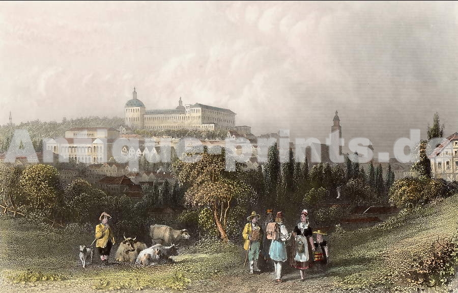 Griechenland. Stahlstich. 1835. leicht stockfleckig in den Rändern. Handkoloriert. 13x7,5cm. Mit Passepartout.