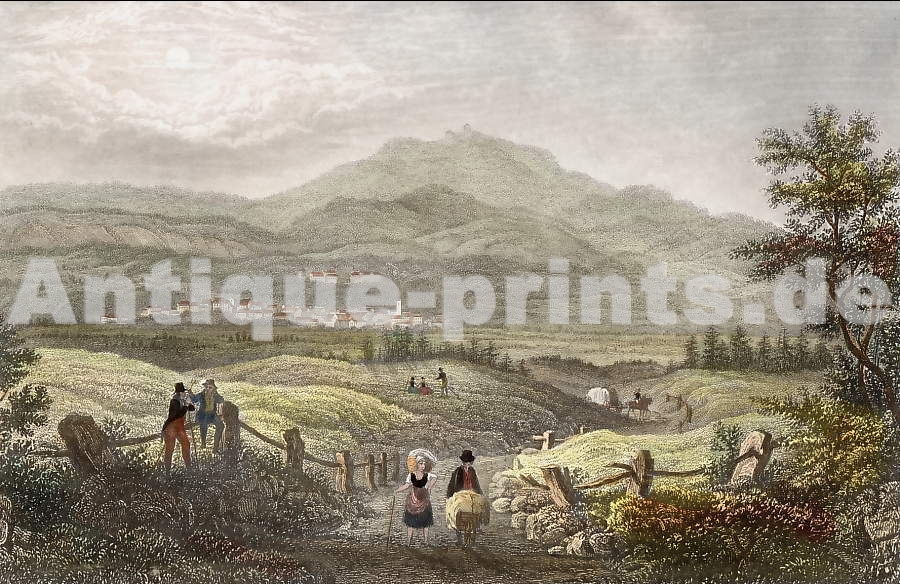 England. Original steel engraving, , engraved by J. W. Lowry after T. Allom. 1837. Very good condition. Hand-coloured. 15,5x10cm. Matted.