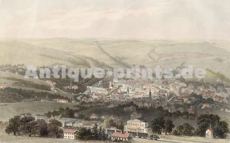 Allemagne. Gravure sur acier, gravée par J. Poppel et M. Kurz d´après J. Gottheil. 1850. Très bon état. Bordure décorative. Aquarellée à la main. 18x10,5cm. Montée sous passe-partout.