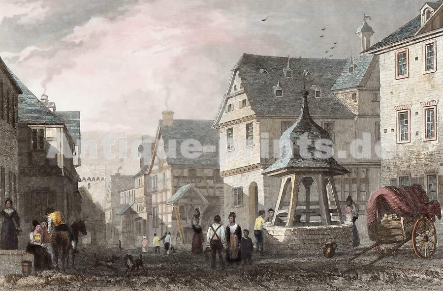 Germany. Original steel engraving, drawn by J. Salmon, engraved by J. Shury. ca 1835. Very good condition. Hand-coloured. 15x10cm. Matted.