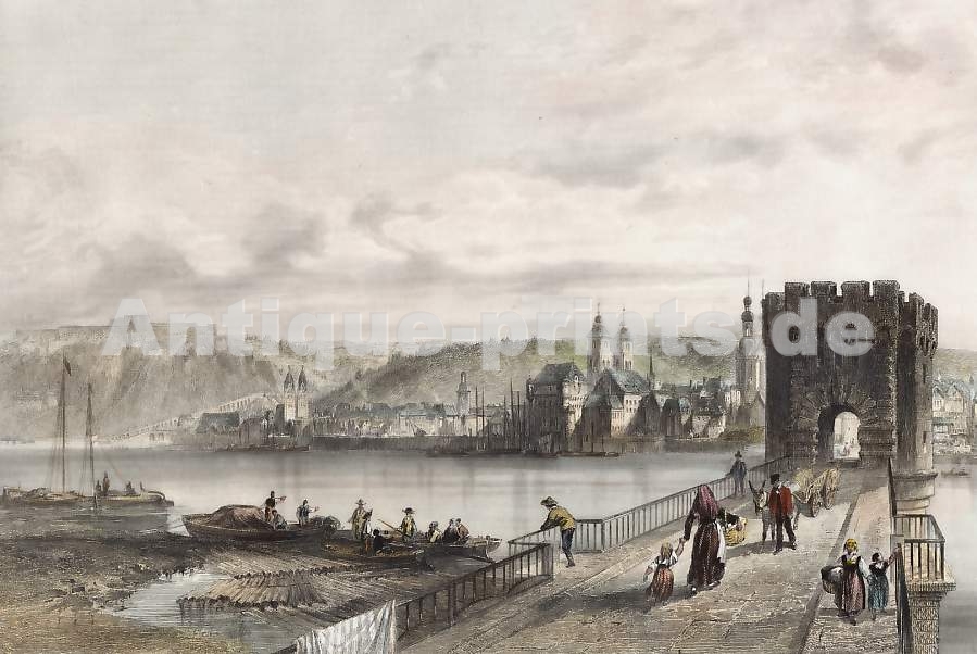 Paris. Gravure sur acier. 1853. Bon état. Bordure décorative. Aquarellée à la main. 11x7,5cm. Montée sous passe-partout.