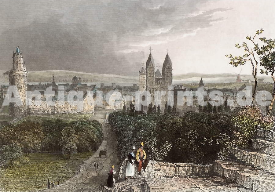 Allemagne. Gravure sur acier, gravée par J. Tingle d´après W. Tombleson. 1832. Très bon état. Aquarellée à la main. 16,5x9,5cm. Montée sous passe-partout.