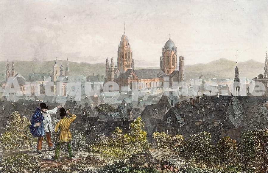 France. Gravure sur acier, gravée par J. Schroeder d´après F. A. Pernot. 1855. Très bon état. Aquarellée à la main. 16x11,5cm. Montée sous passe-partout.