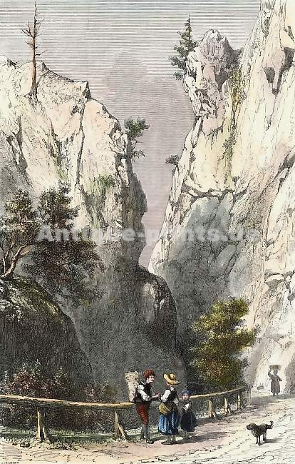 Varia. Gravure tintée sur acier, gravée par W. French d´après R. Weibezahl. ca 1850. Très bon état. Aquarellée à la main. 19x14cm. Montée sous passe-partout.